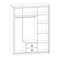В отделении для одежды находится штанга для вешалок-плечиков и удобная полка, а также отделение с двумя выдвижными ящиками