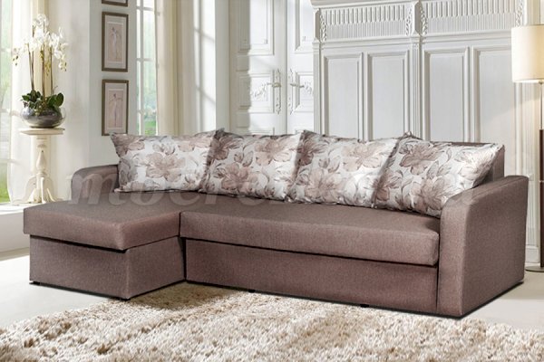 Угловой диван для современного дизайна в сдержанных строгих формах. Имеет небольшие габариты, что позволяет его использовать как в качестве места для отдыха, так и в качестве постоянного спального места. В комплект входят декоративные диванные подушки, которые могут быть обшиты различным материалом.  Они придают дивану особый шарм и делают его весьма комфортным.
