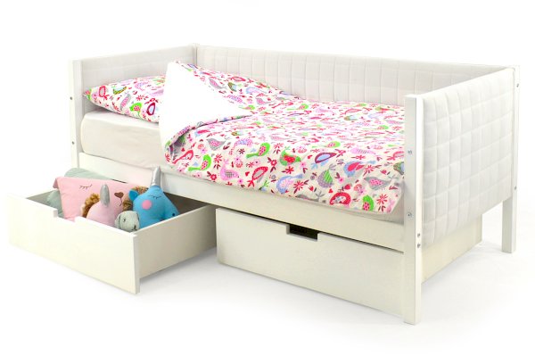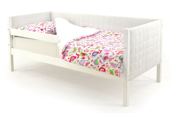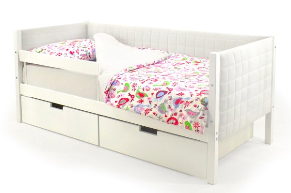 Кровать оборудована манежным бортиком, который защищает малыша от падения во время игр. А для обеспечения дополнительной безопасности малыша во время сна можно приобрести съемный бортик. Особенность его в том, что он закрывает кровать не по всей длине, а только ее часть, благодаря такому конструктиву, ребёнок легко сможет сам забираться на свое спальное место.