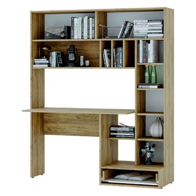 Письменный стол Техно – не просто стол, это готовое решение для организации рабочего пространства. В комплектацию входит столешница, верхние и боковые ниши, спрятанные за дверцы, нижний выдвижной ящик и открытые полки. Разместить необходимые предметы, включая технику, не составит труда. Цветовое решение позволит модели вписаться в современный интерьер, особенно в стиле лофт.