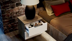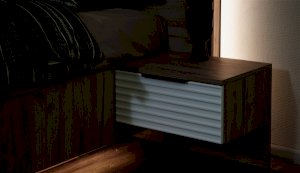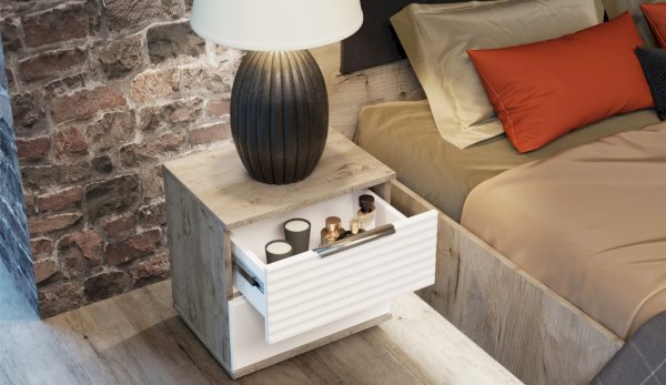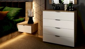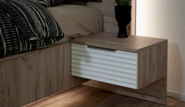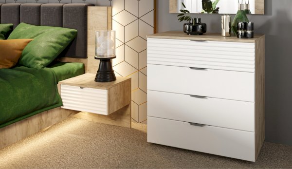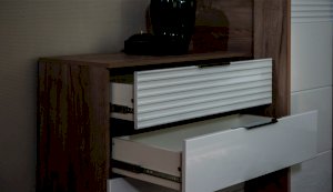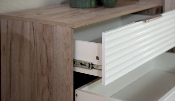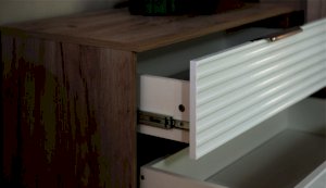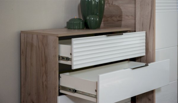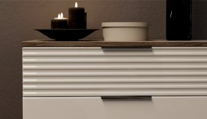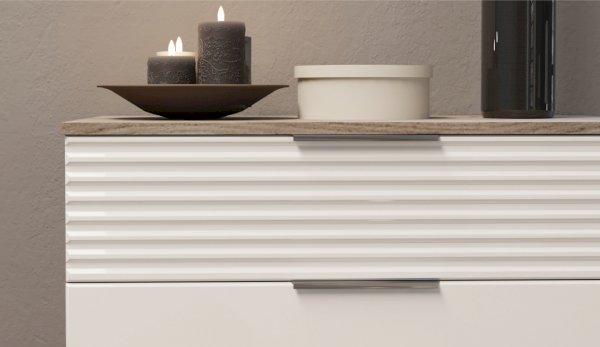 Цвет: Дуб крафт серый/Белый глянец High Gloss с фрезерованным рисунком "волна"