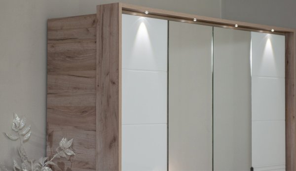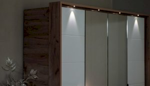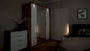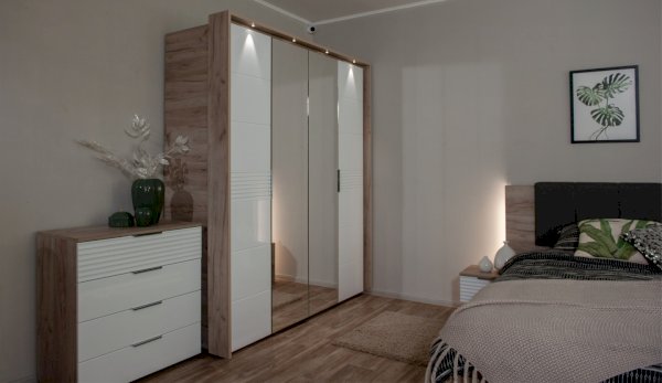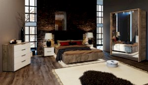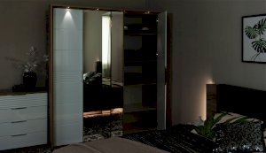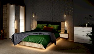 Спальня Джулия – новинка европейского рынка! Белый глянец на фрезерованных фасадах спальни отражает даже малое количество естественного света, делая ее намного уютней и светлей. Корпус из ЛДСП австрийского концерна Кроношпан с декором дуб крафт серый - цвет и текстура натурального дерева. Центральный элемент - двуспальная словно парящая в воздухе кровать, выполненная в простых и лаконичных формах с подсветкой снизу - самый актуальный дизайн современной спальни. Это свежее стилистическое решение, способное удивить родственников, друзей. Светодиодная подсветка служит дополнительным освещением в ночное время и создает романтическое настроение. Комбинированное мягкое изголовье с подсветкой - дополнительный комфорт, на него удобно опираться. Большой вместительный шкаф с точечной подсветкой и рамкой из ЛДСП 22мм. Современные торцевые ручки очень удобны в эксплуатации и надежно крепятся к фасадам.