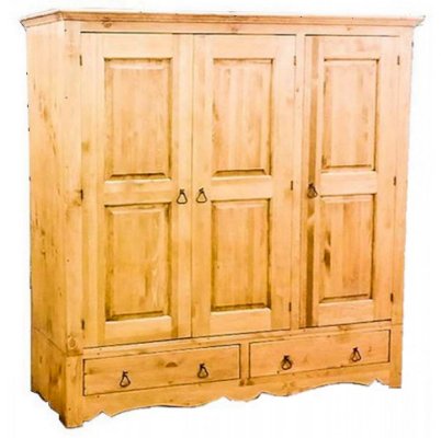 Шкаф имеет все необходимое для качественного хранения одежды: два отделения с вешалкой для одежды, одно отделение с полками для белья, два выдвижных ящика.