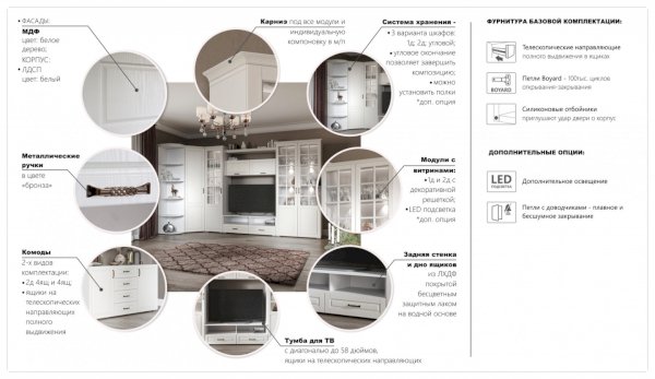 Внимание! Подсветка и карнизы приобретаются отдельно.