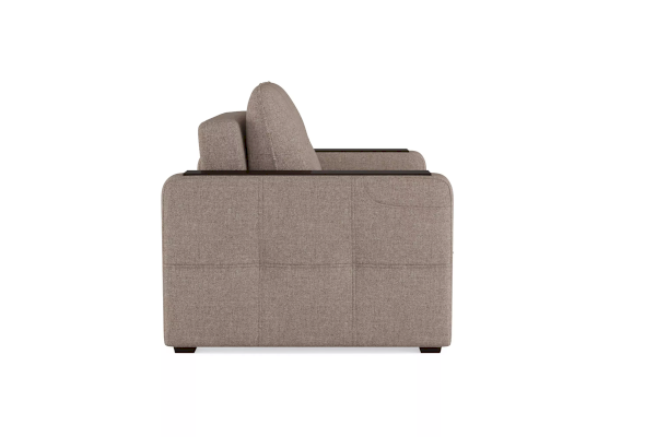 Помимо односпального места и бельевого ящика модель оснащена накладками на подлокотниках, на которые удобно поставить кружку. На подлокотнике есть карман, чтобы гаджеты или книга были всегда под рукой. Модель не перегружена декором, поэтому подойдёт к большинству современных интерьеров.