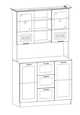 Буфет «Ампир» разместит в себе всю кухонную утварь. На его полках хватит места для различных видов посуды и инвентаря. Оригинальный дизайн модели оживляет интерьер. Резные элементы на дверцах и изящная фурнитура отлично сочетаются с текстурой дерева. Холодные светлые оттенки привносят в помещение кухни ощущение свежести и навевают приятные мечты.