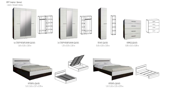 спальня Фиеста венге/белый глянец