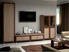 Данное изображение представлено в следующих цветах: корпус - Ясень Шимо светлый, фасады: рамка МДФ - Ясень Шимо тёмный + филёнка - Ясень Шимо светлый / стекло БРОНЗА.
