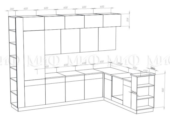 Высота верхних шкафов: 1078 мм