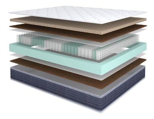 Наполнитель: Кокосовая койра, НПБ 256 шт/кв.м., система усиления боковой поддержки, ППУ, перфорированный латекс Latex Perfo