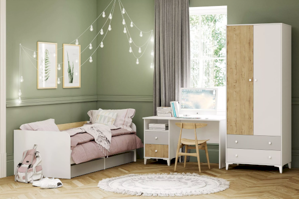 Одним из важнейших принципов развития ребенка является обустройство его рабочего места, где школьник сможет выполнять уроки, заниматься творчеством и любимым хобби. Письменный стол «Морти» с тумбой позволит оформить в спальне рабочий уголок в скандинавском стиле. Белый цвет столешницы хорошо гармонирует с контрастными ящиками.