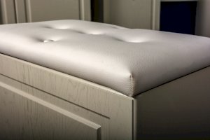 Фурнитура: Распашные фасады на четырёхшарнирных петлях, подъёмные фасады на газлифтах, выдвижные ящики на шариковых направляющих полного выдвижения.