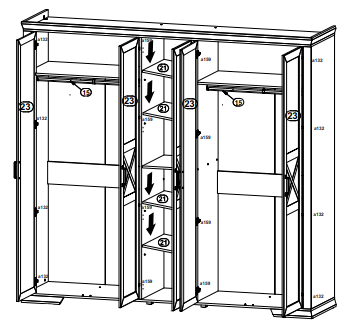 Шкаф разделен на 3 отделения: правое и левое – полка и стационарная штанга для одежды
